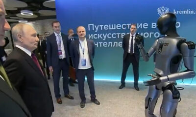 Робот со вештачка интелигенција денес настапи пред претседателот на Русија, Владимир Путин, на изложба организирана од една руска банка, со цел да ги прикаже технолошките достигнувања на компанијата.