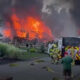 У результаті одного з влучань виникла пожежа на території автотранспортного підприємства: горіли 2 гаражні бокси та автомобілі на загальній площі 150 кв.м. pic.twitter.com/V3KfCFZaRj