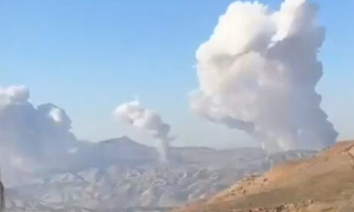 На снимките може да се слушнат експлозии, а најмалку три облаци чад се издигаат од планинска област.
