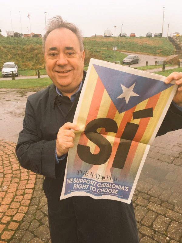 „Пресудата на шпанскиот суд за деветтемина каталонски политичари на девет до 13 години затвор, секој за архаичниот прекршок противдржавно дејствување поради нивните мирни напори за постигнување независност, ќе биде ден на демократскиот срам за Шпанија. Уште полошо – за Шпанија, барем тоа е знак дека шпанската контрола врз покраината завршувa“, рече Салмонд, кој како прв министер го водеше шкотскиот референдум за независност во 2014 година.