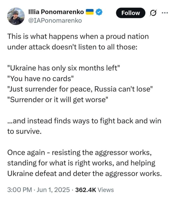 — Illia Ponomarenko 🇺🇦 (@IAPonomarenko) June 1, 2025