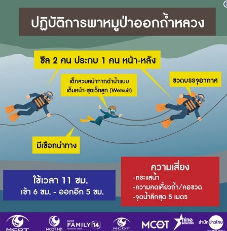Тајландската Влада го објави планот за спасување на заробените деца во пештерата. Според него, двајца нуркачи ќе придружуваат по едно момче, а низ пештерата ќе ги влечат со јаже.
