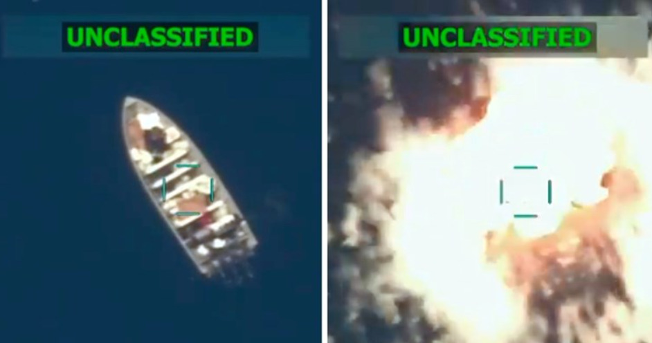 Објавата на Хегсет вклучуваше видео клип од 22 секунди од експлодирањето на бродот во нападот на американската војска.
