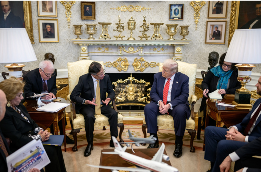 Белата куќа објави нивна фотографија од Овалната соба, на која се гледа и потпретседателот Џ.Д. Венс, и хартија во рацете на еден од помошниците на Петро на која пишува „КОЛУМБИЈА: Сојузник на Америка против нарко-терористите“.