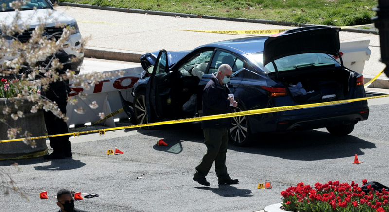 „Осомничениот се залетал со својот автомобил и удрил во двајца наши колеги кога налетал на бариерата“, соопшти шефицата на полицијата во Капитол, Јогананда Питман за инцидентот. Осомничениот потоа излегол од автомобилот со нож во раката и се упатил кон полициските службеници, по што тие пукале и напаѓачот бил убиен. Полицаецот Вилијам Еванс им подлегнал на повредите по инцидентот.