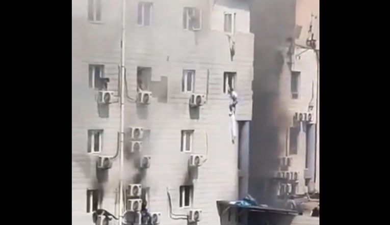 Видеата од пожарот кои кружат на социјалните мрежи покажуваат црн чад како излегува од зградата, а некои луѓе бегаат низ прозорците на јаже направено од чаршафи.