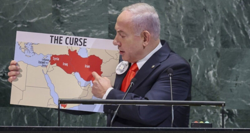 (Видео) Нетанјаху зборуваше на хебрејски во ОН, мавташе со карти, па ги нападна европските земји