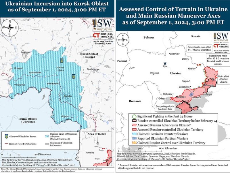 Друг руски воен блогер тврди дека руските сили не успеале да воспостават упориште во Борка (југоисточно од Суџа) и продолжиле да ги напаѓаат украинските позиции во населбата.