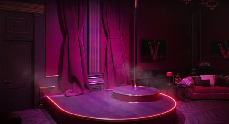 Собата што ја нарекоа „најконтроверзната соба во палатата на Путин“ е салон за наргиле што има нешто што изгледа како шипка за танцување.