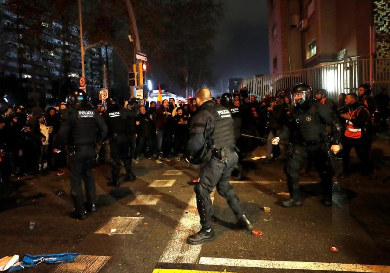 Каталонските сепаратисти организираа протести во околината на стадионот Камп Ноу во Барселона каде што се играше фудбалскиот натпревар помеѓу Барселона и Реал Мадрид.