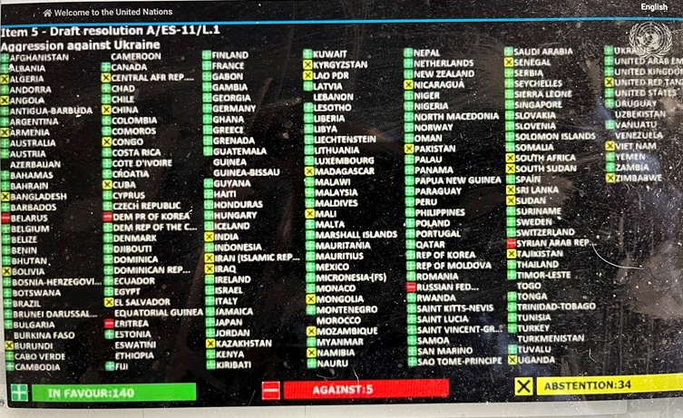 За резолуцијата гласаа 141 од 193 членови на Генералното собрание, пренесува „Ројтерс“.