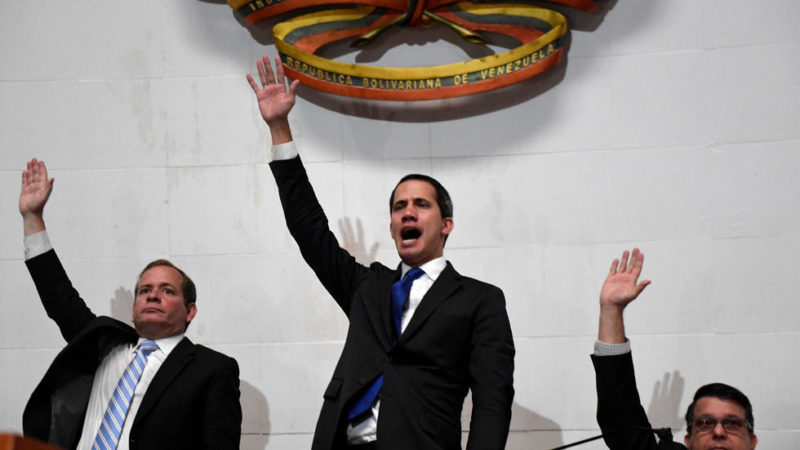 Лидерот на венецуелската опозиција Хуан Гваидо и пратениците кои го поддржуваат денеска влегоа во парламентот, каде тој положи заклетва како самопрогласен привремен претседател на институцијата.