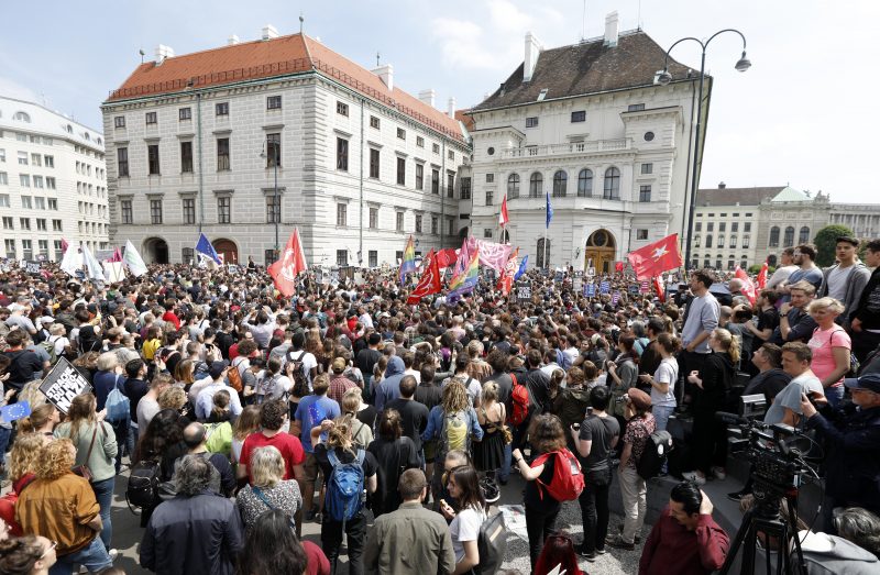 Пред седиштето на австриската влада, каде Курц се наоѓа од утринава, за предвремени избори протестираат околу 20.000 луѓе, пренесоа австриските медиуми.