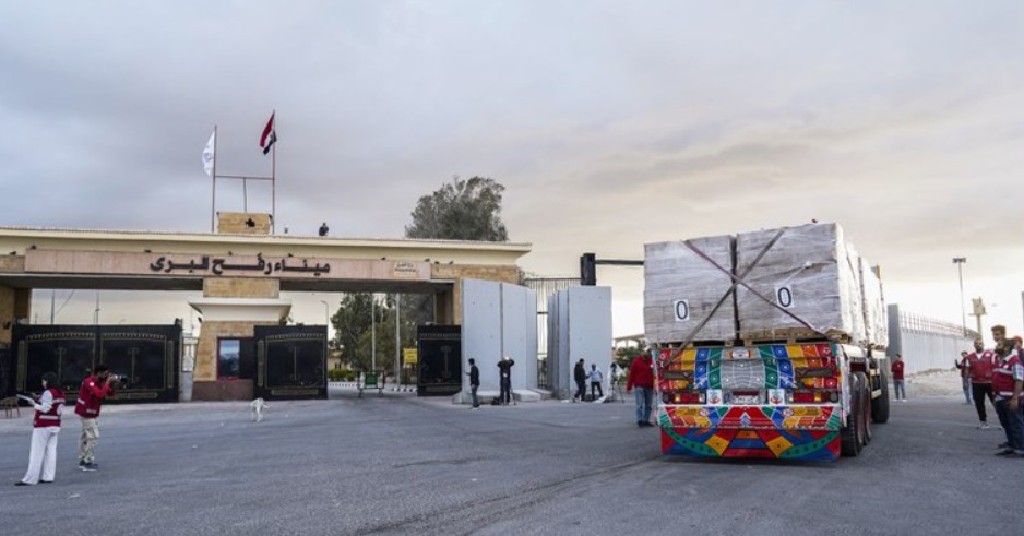 COGAT, израелската воена гранка што го надгледува протокот на помош во Појасот Газа, соопшти дека хуманитарната помош сè уште влегува на територијата преку преминот Керем Шалом со Израел и други премини.