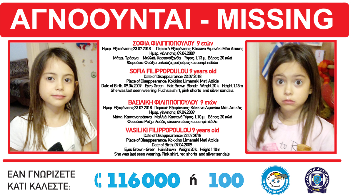 Приватниот истражувач, ангажиран од семејството, Јоргос Цукалис потврди дека во Институтот за судска медицина биле идентификувани телата на деветгодишните Василики и Софиа Филипопулу. На близначките и нивните баба и дедо им се изгуби секаква трага по пожарот. Тие избегале кога огнот се приближил до нив, а нивниот татко веруваше дека ги видел на една снимка. Иако видеото е нејасно, бидејќи е направено навечер во Луци Рафина на еден брод, тоа за нивниот татко претставуваше последната сламка на надеж.