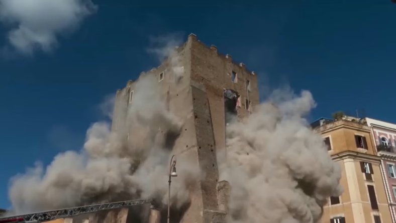 Во срцето на Рим, во близина на Колосеумот, дел од средновековната кула Торе деи Конти, која моментно се реставрира, се урна утрово. Во драматична спасувачка операција четворица работници беа спасени, а еден е сè уште заробен под урнатините и се трага по него, објавува „Евроњуз“.