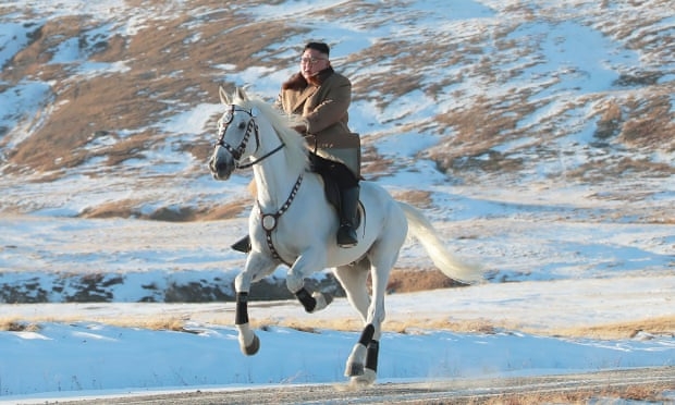 Државните медиуми денес го прикажаа Ким како се качува на планината Пекту на бел коњ.