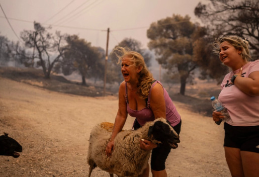 Луѓето се обидуваат да ги спасат своите, но и животите на милениците: драматични сцени од пожарите во Грција