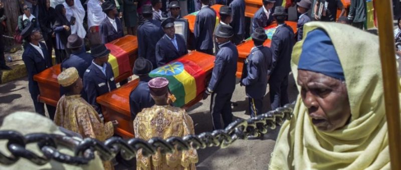 Илјадници граѓани и членови на семејствата се собраа на заедничкиот погреб за жртвите на настраданите во недамнешната авионска несреќа во близина на главниот етиописки град, Адис Абебе.