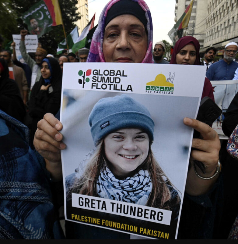 Заедно со десетици други мировни активисти Грета двапати се обиде да отплови до Газа оваа година, да достави хуманитарна помош и барем симболично да ја пробие израелската поморска блокада. Во вториот обид младата Швеѓанка се приклучи на глобалната флотила „Сумуд“, која израелската морнарица ја запре во меѓународни води на почетокот на октомври и ги притвори активистите.