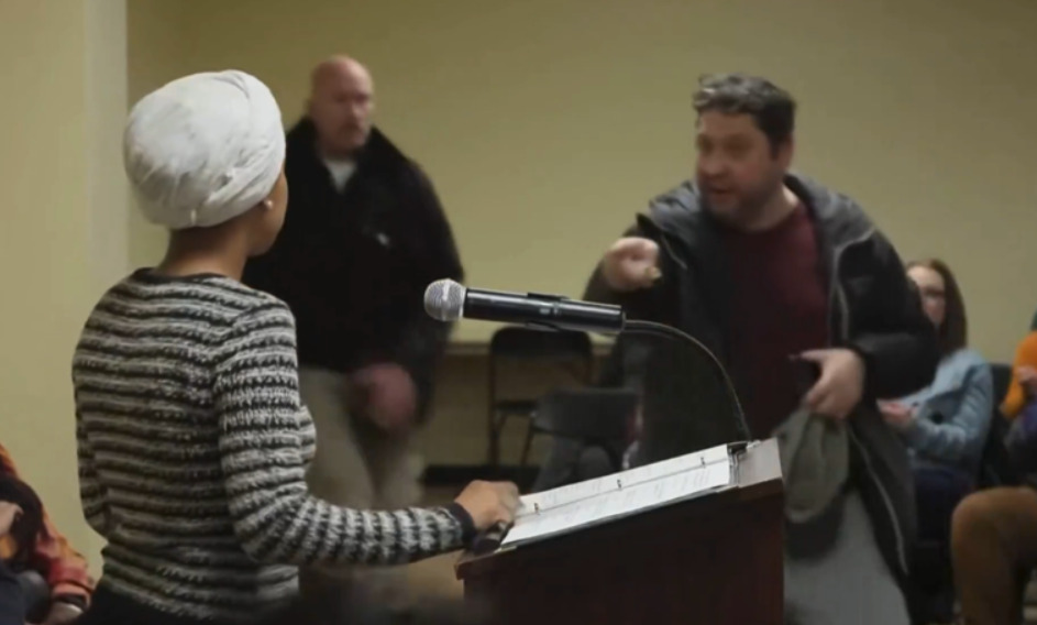 NEW — Rep. Ilhan Omar was just charged by a man at a town hall event in Minneapolis. Crowd says he "sprayed her" with something.