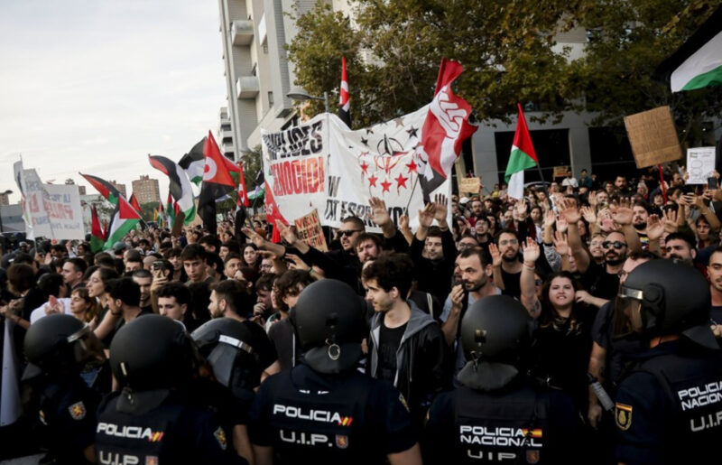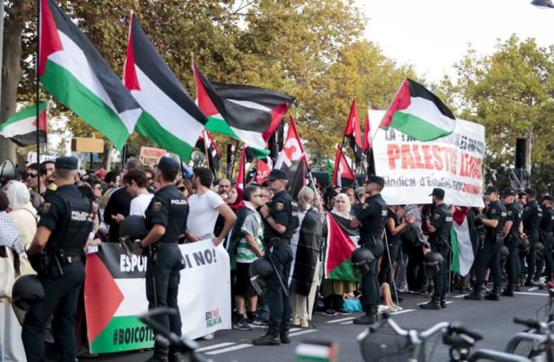 Најмалку пет лица беа приведени, а неколку беа повредени во пропалестинските протести во Валенсија што се одржаа пред и за време на кошаркарскиот натпревар од Евролигата помеѓу Валенсија и Хапоел Тел Авив. Натпреварот помеѓу Валенсија Баскет и Хапоел Тел Авив се играше пред затворени врати, но тензиите беа високи пред Роиг Арената.
