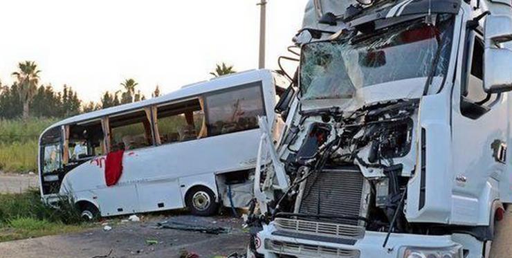 Камион удрил во автобус, кој паднал во канал со вода. Повредените, вклучувајќи и четири деца меѓу 7 и 12 години, биле префрлени во болниците во Серик и Анталија.