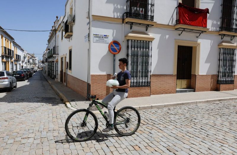 На таблата на кружниот тек на влезот во селото, натписот Украина го замени Фуентес де Андалузија, а до него беше насликано сино-жолто знаме, пренесе Ројтерс.