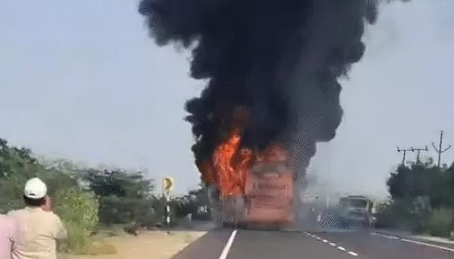 A moving bus consisting 57 passengers caught fire. More than 10 people got burnt and rest are given medical assistance. pic.twitter.com/yi76gcQ5Y6— पारुल कुलश्रेष्ठ (@parul_kuls) October 14, 2025