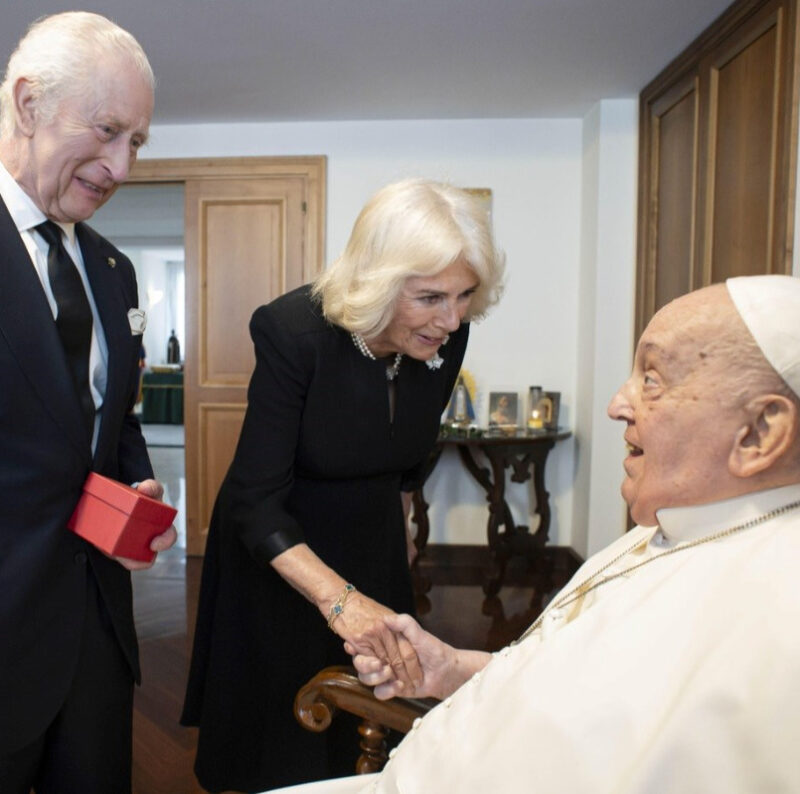 Папата Франциско почина утрово, а една од своите последни приватни аудиенции ја одржа на 9 април во резиденцијата Каза Санта Марта во Ватикан, каде што се сретна со кралот Чарлс и кралицата Камила по повод нивната 20-годишнина од бракот.