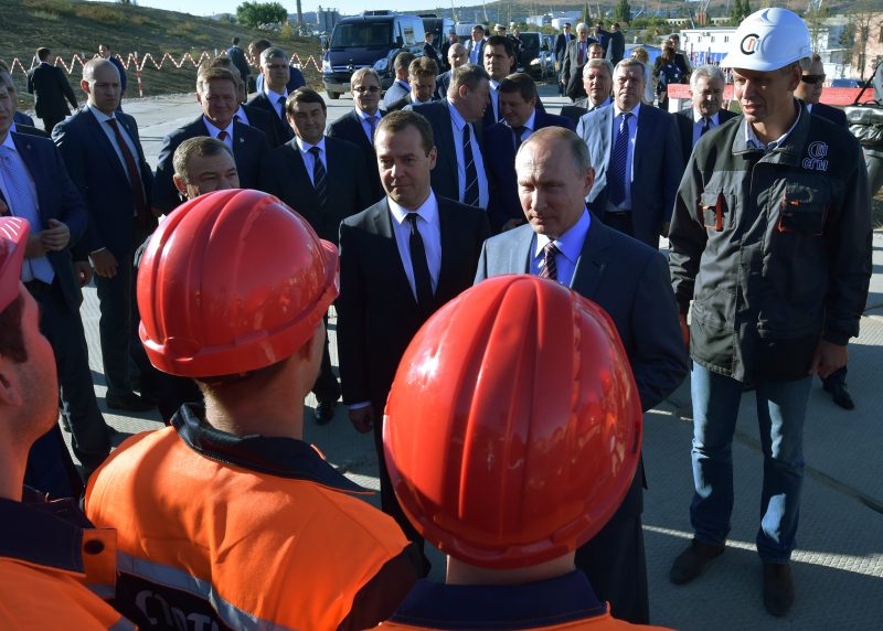 Изградбата на мостот што почна во февруари 2016 година, Русија му ја довери на милијардерот Аркадиј Ротенберг, кој му е партнер на Путин во џудо. Според уредбата објавена на владината интернет-страница, „Стројгазмонтаж“ изградбата на мостот требаше да се финишира до декември годинава по цена што не би требало да надмине 2,9 милијарди евра. Но, за време на посетата во март, неколку дена пред победата на претседателските избори, Путин побара мостот да биде подготвен веќе месецов за да можат луѓето да го користат во текот на летото.