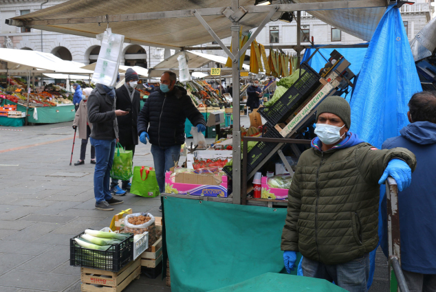 Во земјата се заразени над 115.000 луѓе, а речиси 14.000 починаа. Во ваква ситуација, фоторепортерите на агенцијата ЕПА сликале како изгледа еден пазарен ден во северноиталијанскиот град Падова, кон средината и крајот на март.