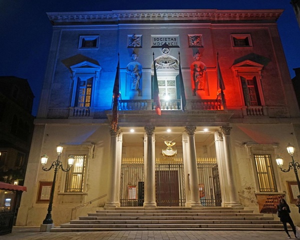 Примерот го следеа и Франција и Италија. Фасадата на театарот La Fenice во Венеција исто така минатата ноќ беше била осветлена со боите на француското знаме.