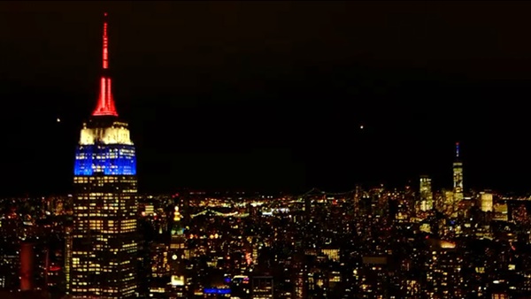 Така, беше осветлен Емпајер стејт билдинг во Њујорк. Врвот на Светскиот трговски центар е осветлен во боите на знамето на Франција во знак на солидарност со народот на оваа земја и на католичката заедница во светот.