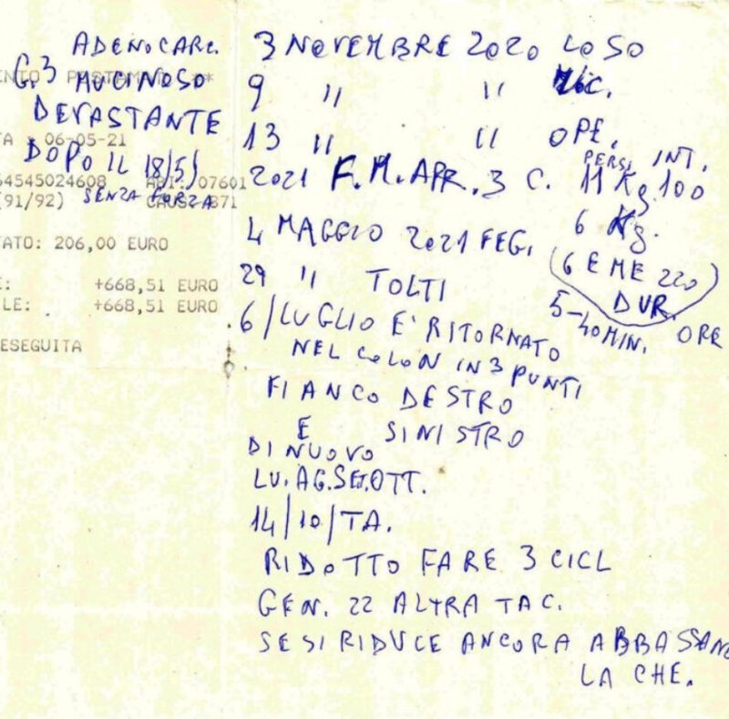 69-годишната жена, исто така сопруга на затворениот мафијаш Филипо Гутадауро, ненамерно ѝ помогнала на полицијата да го најде брат ѝ во бегство благодарение на чкртаницата што ја скрила во ногарката на алуминиумското столче во својот дом. Полицијата ја пронашла додека таму се обидувале да скријат уред за прислушкување. Белешката открива дека брат ѝ боледува од рак, објави Би-би-си.