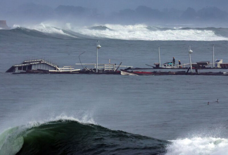 Градоначалникот на Санта Круз изјави дека пристаништето во тој град се урнало поради невремето, а три лица, кои паднале во Тихиот Океан, се спасени, пренесе АП.
