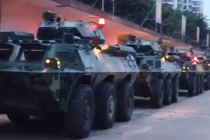 „Глобал тајмс“, националистички таблоид поврзан со Комунистичката партија, објави видео од воени возила кои влегуваат во градот.