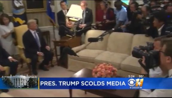 Претседателот на САД, Доналд Трамп ги искарал јужнокорејските новинарите кои влегле во Овалната соба, по средбата со јужнокорејскиот колега Мун Џае-Ин и, во обид да си обезбедат што подобра позиција, оштетиле еден стол и за малку ќе искршиле една лампа“, пишува „Њујорк пост “.