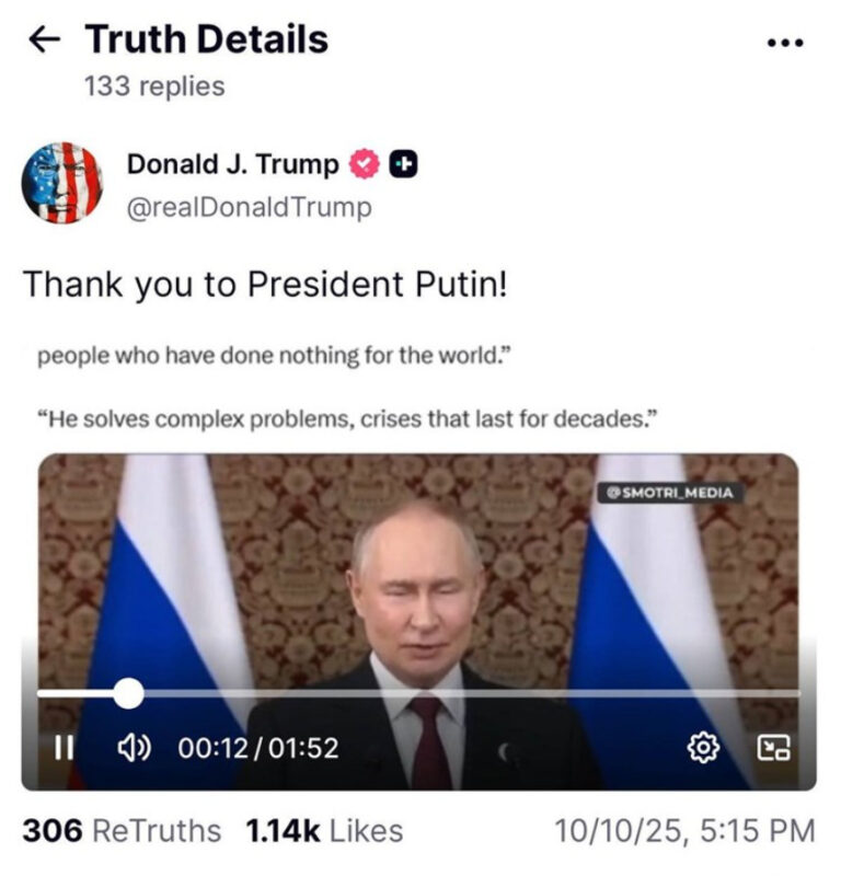 Путин, како потсетување, денес изјави дека Трамп „прави многу за мирот“, наведувајќи го прекинот на огнот на Блискиот Исток како пример, но додаде дека не е негова работа да одлучи дали американскиот претседател ја заслужува Нобеловата награда за мир.