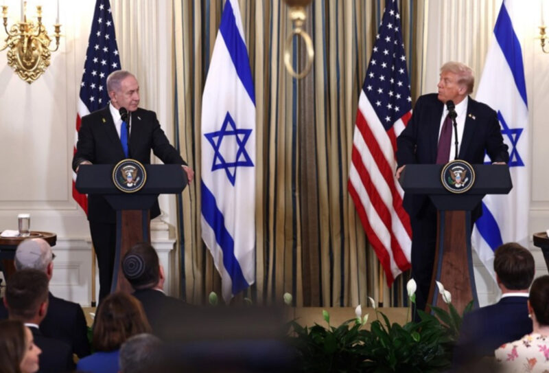 Американскиот претседател Доналд Трамп и израелскиот премиер Бенјамин Нетанјаху вчера одржаа клучна средба во Белата куќа, на која Трамп го претстави својот сеопфатен план за ставање крај на војната во Појасот Газа.