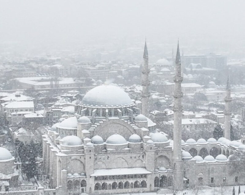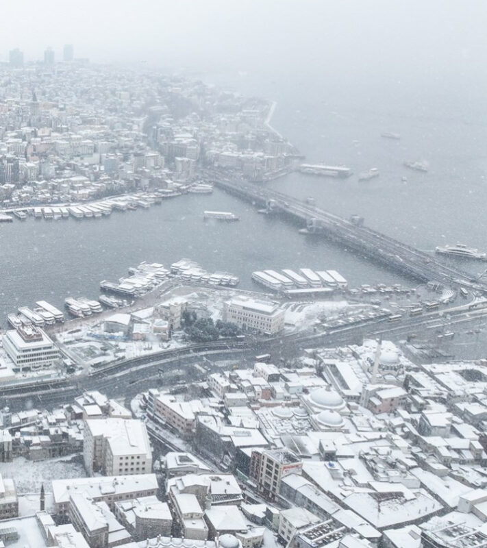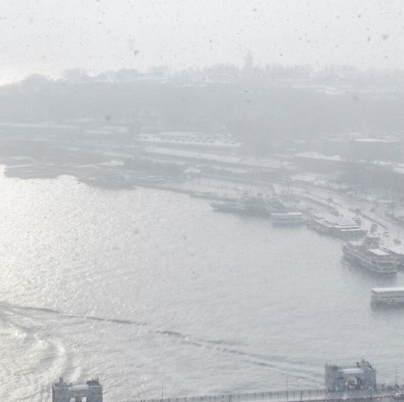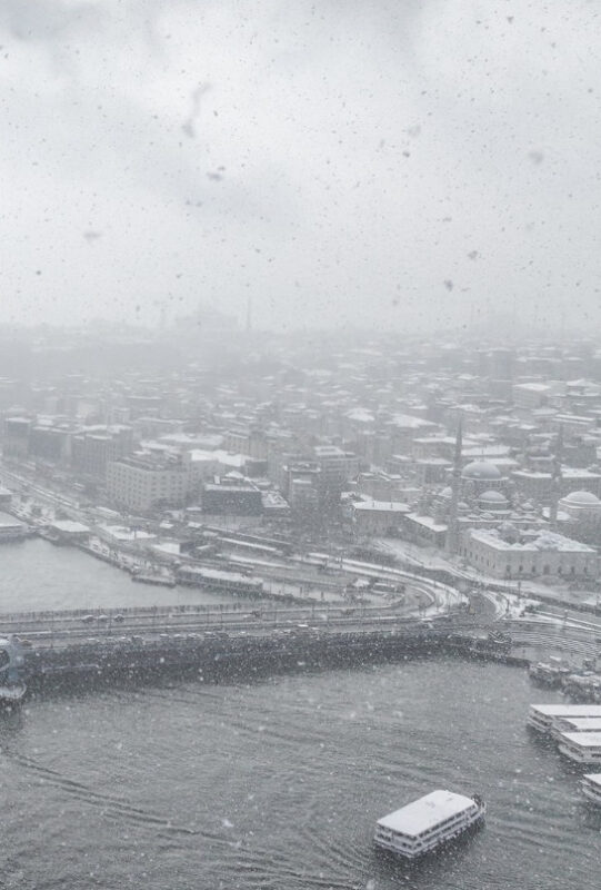 Снежните врнежи кои на моменти се интензивираа, особено во северните и повисоките делови, ги зафатија познатите знаменитости на градот кој се простира на два континента.
