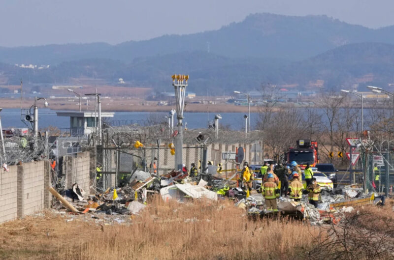 Авионот на Џеџу Ер 7C2216, кој полета од Бангкок, Тајланд до Муан, југозападно од Сеул, принудно слета, удри во бетонски ѕид, експлодираше и се запали.