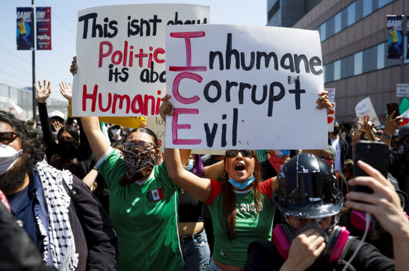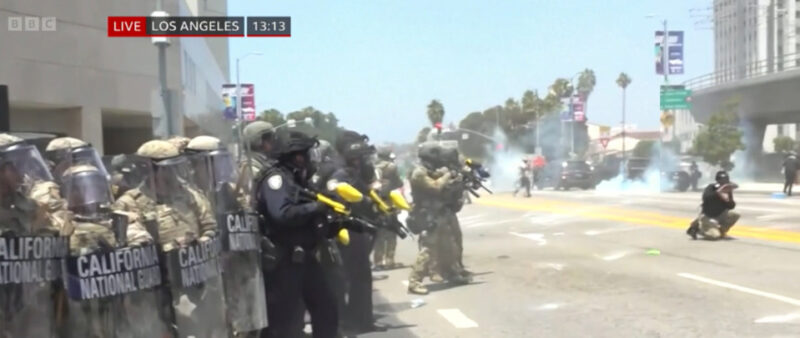 Дваесет и седум лица беа уапсени во неделата кога демонстрантите повторно излегоа на улиците во центарот на Лос Анџелес како одговор на рациите на ICE и одлуката на Доналд Трамп да ја испрати Националната гарда во Калифорнија.