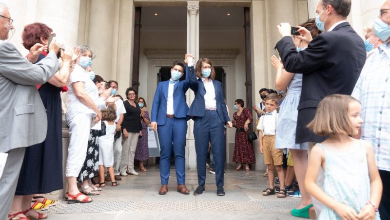 По граѓанската венчавка, која ја направиле Емелин Доде (33) и Ањес Кауфман (31), дошле да примат благослов во црквата Магелон во Монпелје, пренесува парискиот дневен весник „Монд“.