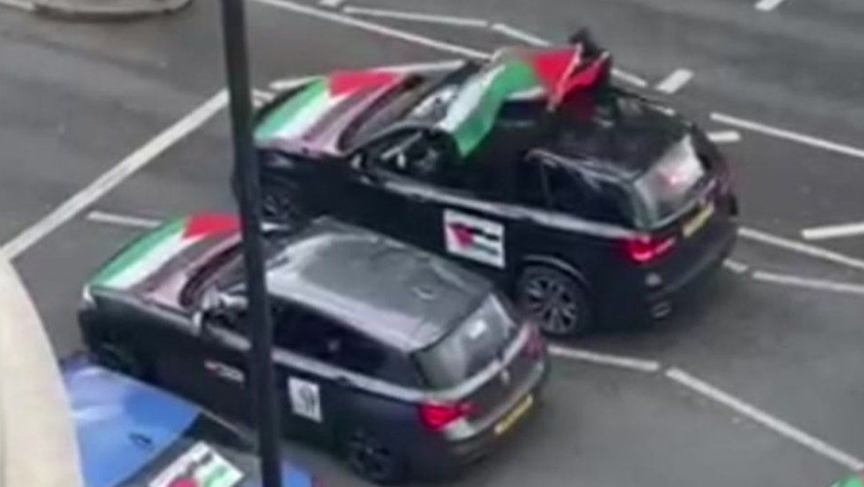 Претходно денеска на интернет се појави видео од колона автомобили со палестински знамиња како минуваат низ северен Лондон и емитуваат антисемитски пораки преку мегафон.