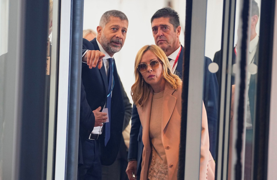 Во интервју за италијанската телевизиска станица РАИ, Мелони рече дека министерот за одбрана Гвидо Кросето и министерот за надворешни работи Антонио Тајани се пријавени во Меѓународниот кривичен суд и рече дека „мисли“ дека тоа се однесува и на Роберто Чинголани, шефот на одбранбената групација Леонардо.
