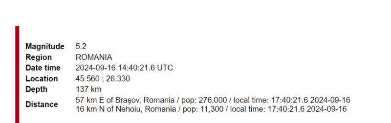 Околу 17:40 часот земјотрес со јачина од 5,2 степени според Рихтеровата скала ја погоди Романија, јави ЕМСЦ.