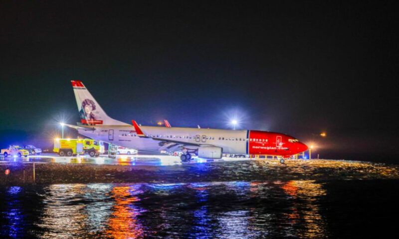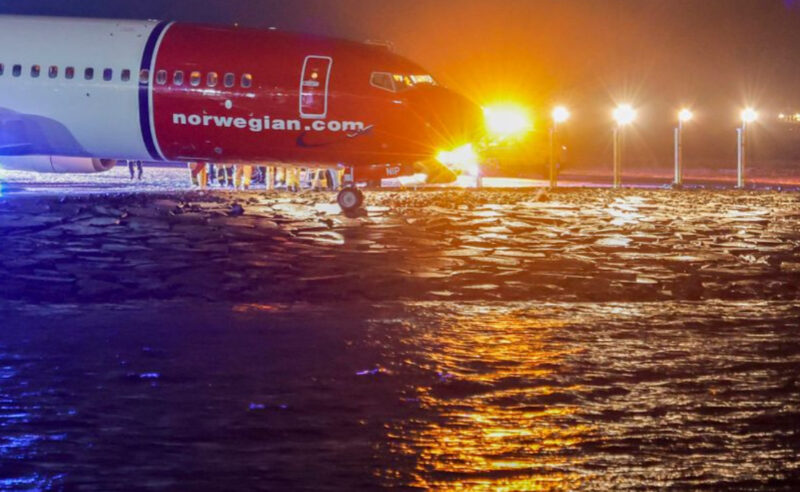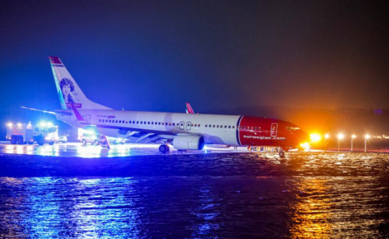 Компанијата „Норвегиан“ во четвртокот вечерта соопшти дека временските услови биле причината поради која авионот завршил од пистата.