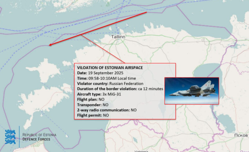 Министерството за одбрана на Естонија ја објави патеката на летот на трите руски воени авиони кои го нарушиле естонскиот воздушен простор.