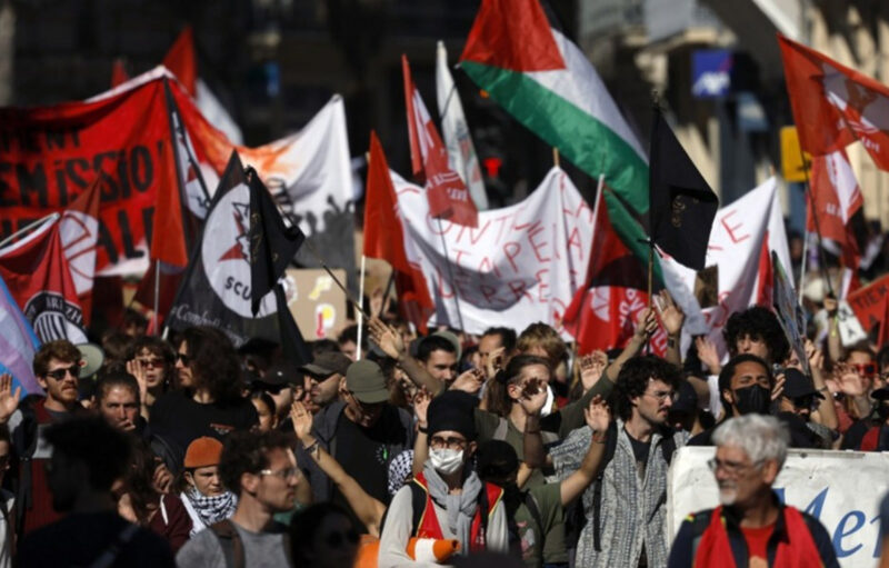 Околу 85.000 луѓе демонстрираа низ целата земја до пладне, соопшти Министерството за внатрешни работи, помалку од половина од бројот присутни во исто време на денот на штрајкови и демонстрации во септември.
